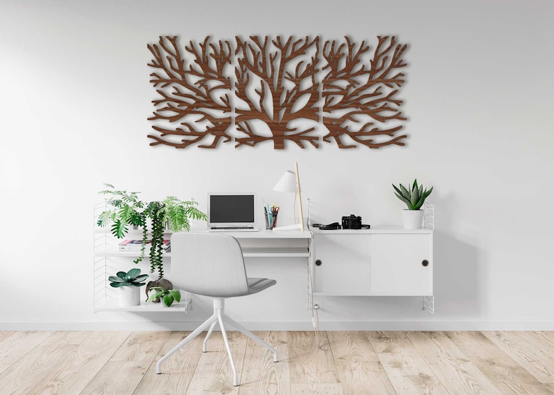 Set of 3 Wooden Branch Wall Decor | Decorative Wood Wall Art Home Ornament Hanging Decoration Gift