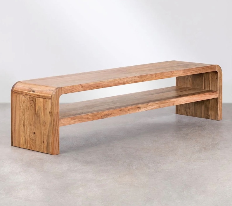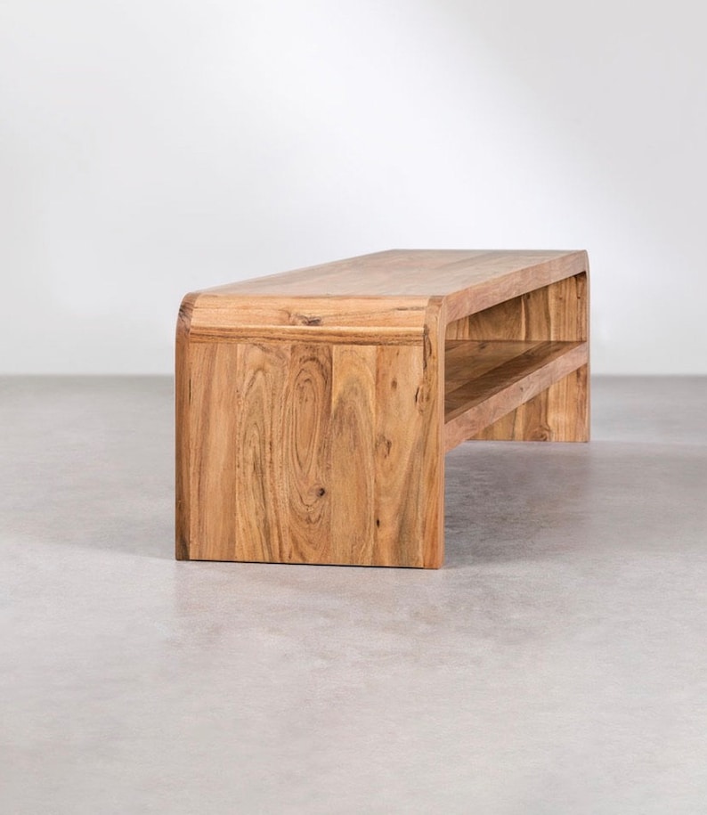 Elevate your entertainment space with our exquisite Acacia Wood TV Cabinet. Crafted from premium acacia wood, this TV cabinet seamlessly blends rustic charm with modern elegance. The natural grain of acacia adds a unique touch, making each piece one-of-a-kind. With ample storage space for media components and accessories, it combines functionality with style. The sleek design and sturdy construction ensure a lasting and timeless addition to your home decor. Transform your living area with this handcrafted Acacia Wood TV Cabinet, a perfect balance of form and function