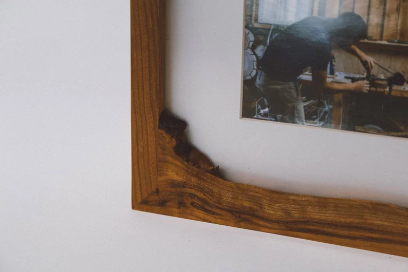 Just send us a message along with your photo, and we will craft a frame with unique live edges designed to compliment it. This customized approach guarantees that your artwork or photo will be showcased in its finest form, with the frame enhancing its beauty. If you’re uncertain about which photo to frame, that’s no problem – I will work to create a frame that will look fantastic regardless.