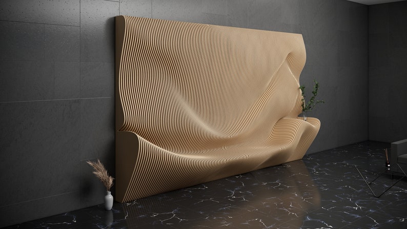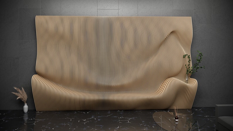 This parametric wavy wooden is uniquely designed.Immerse your living space in contemporary elegance with our parametric design. What would it be like to go beyond the ordinary with parametric wall art? We are sure that this product will add a special look to your home or office.Feel special in your interior with our modern furniture design.