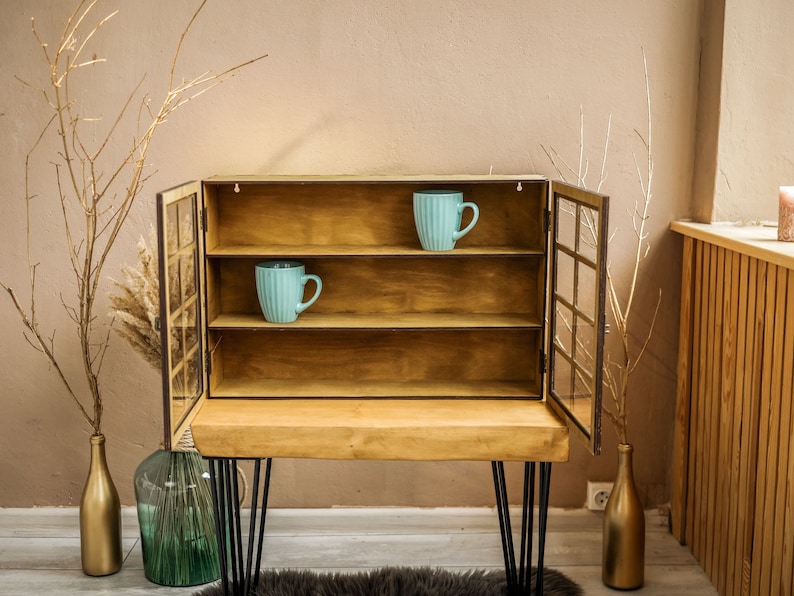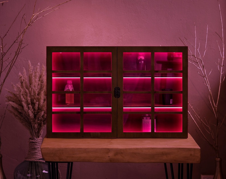 Display case for collectibles, Display case for figures, Wood display case, Display cabinet with glass door, Wall display case glass
