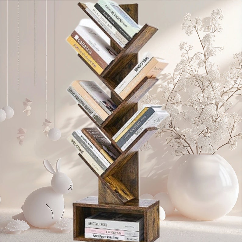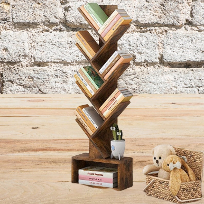 The rustic tree bookcase is an old-time classic with a charming vintage look and functional design. This home bookshelf is a perfect combination of hardened steel and relic particle board that will match perfectly with any other furniture in your home. This bookshelf is not only a beautiful work of art, but also a practical organizer for your home office, living room, and bedroom.