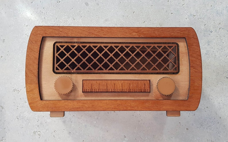 - Attention to Detail: Features intricate detailing that mimics the dials, knobs, and speaker grill of a classic radio, adding authenticity to the design.